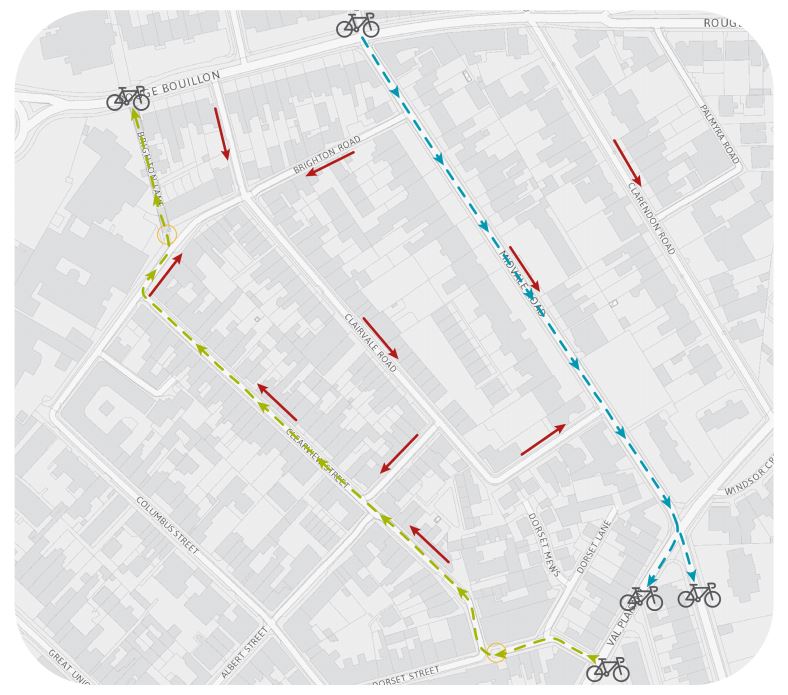 The unloading bay and parking next to Morier House will make way for the cycle lane, but the unloading bay by Dunell’s will remain.